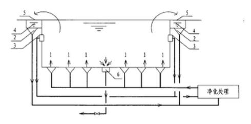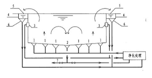 逆流式循環即泳池內的全部循環水量經設在池底的給水口或給水槽送入池內,再經設在池壁的溢水槽取回使用過的相應體積的水,進行凈化(加藥、過濾、加熱及消毒)后再送回池內繼續使用的水流方式。